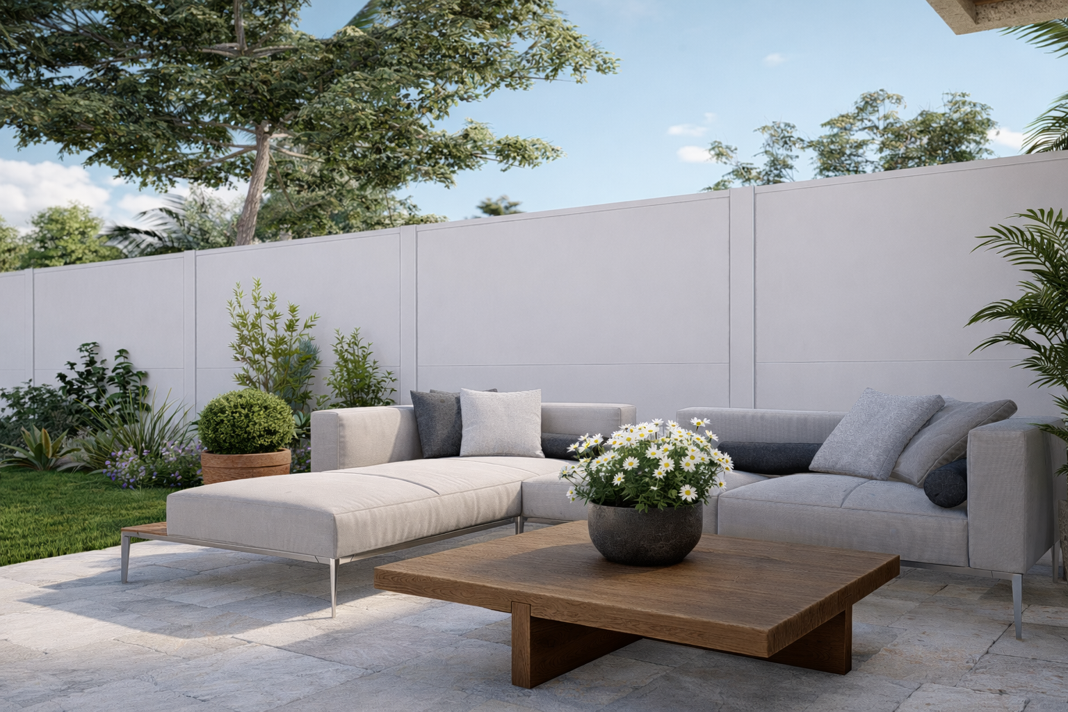 A ModuLINE kerítések célja, hogy túllépjenek a megszokott kerítés fogalmán. Egy olyan rendszert kínálunk, amely egyszerre esztétikus, tartós, gyorsan telepíthető és bármilyen környezethez illeszkedik. A kerítés az otthon névjegykártyája – az első, amit mások meglátnak, és az első, ami biztonságot ad. A ModuLINE kerítésrendszerrel saját, zavartalan életteret alakíthat ki bárki, ahol ő döntheti el, mi marad kint és mi marad bent. A rendszer nemcsak otthonok számára ideális, hanem kereskedelmi és közösségi terekben is megbízható és modern megoldást kínál. Legyen szó irodaházról, üzleti létesítményről vagy társasházi környezetről, a ModuLINE kerítések mindenhol magas szintű biztonságot és eleganciát nyújtanak. Megoldásunk valódi innováció: a vakolt téglakerítés elegáns megjelenését idézi, de jóval kedvezőbb áron és töredéknyi telepítési idővel. A ModuLINE kerítések a stílus, a tartósság és a praktikum tökéletes egyensúlyát hozzák el – mert ma már tudjuk: egy kerítés nem csupán határ, hanem otthonunk és közösségeink része.